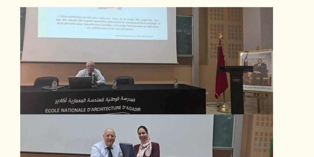 Retour en images sur les moments forts de la conférence animée par Monsieur Mohammed El Habib Begdouri Achkari, qui s’est tenue le Mercredi 15 Octobre 2025 sous le thème « La formation de l’architecte au Maroc : opportunités et perspectives”, en présence de madame Imane BENTAHILA, directrice de l’Ecole Nationale d’Architecture d’Agadir, des enseignants, étudiants et équipes de l’Ecole.