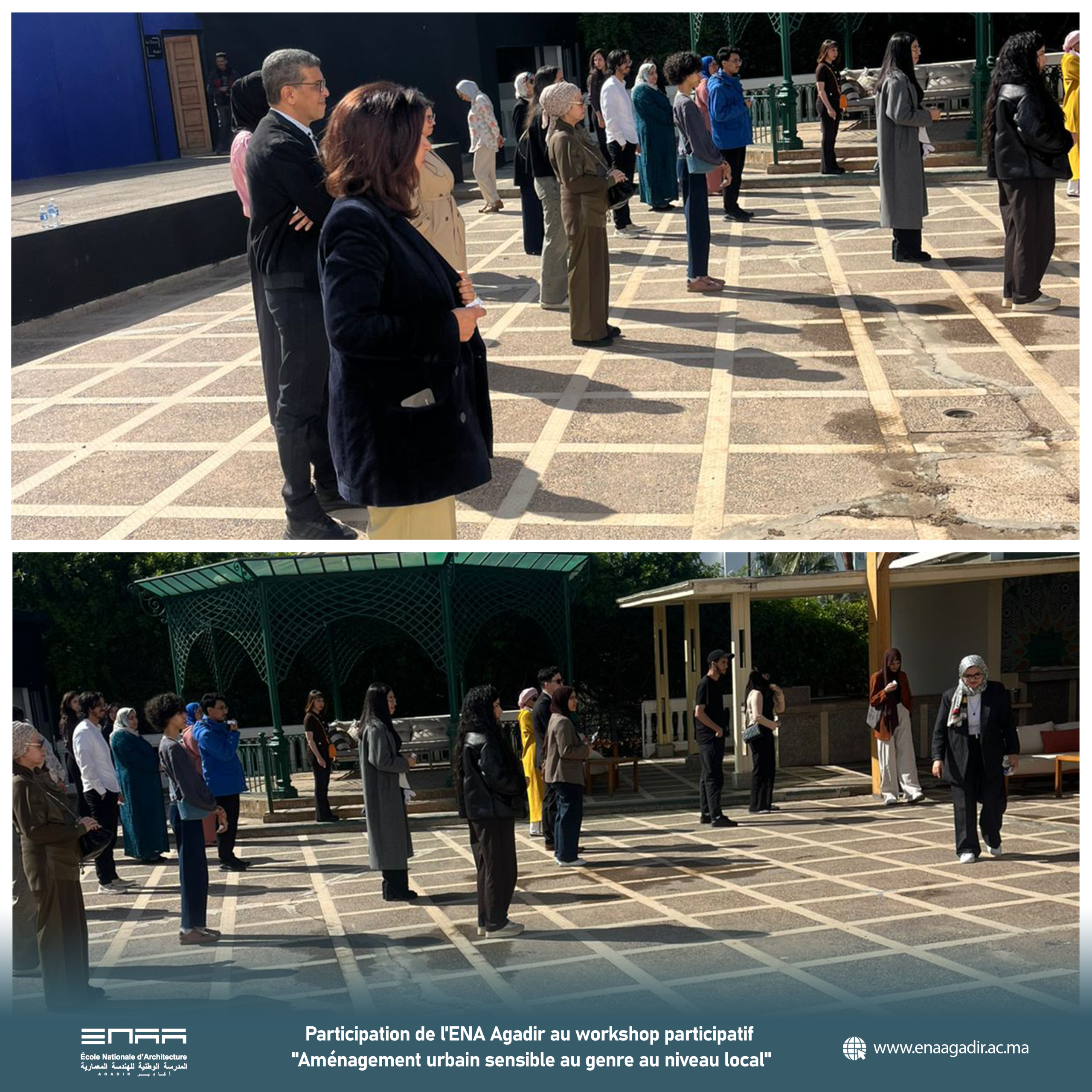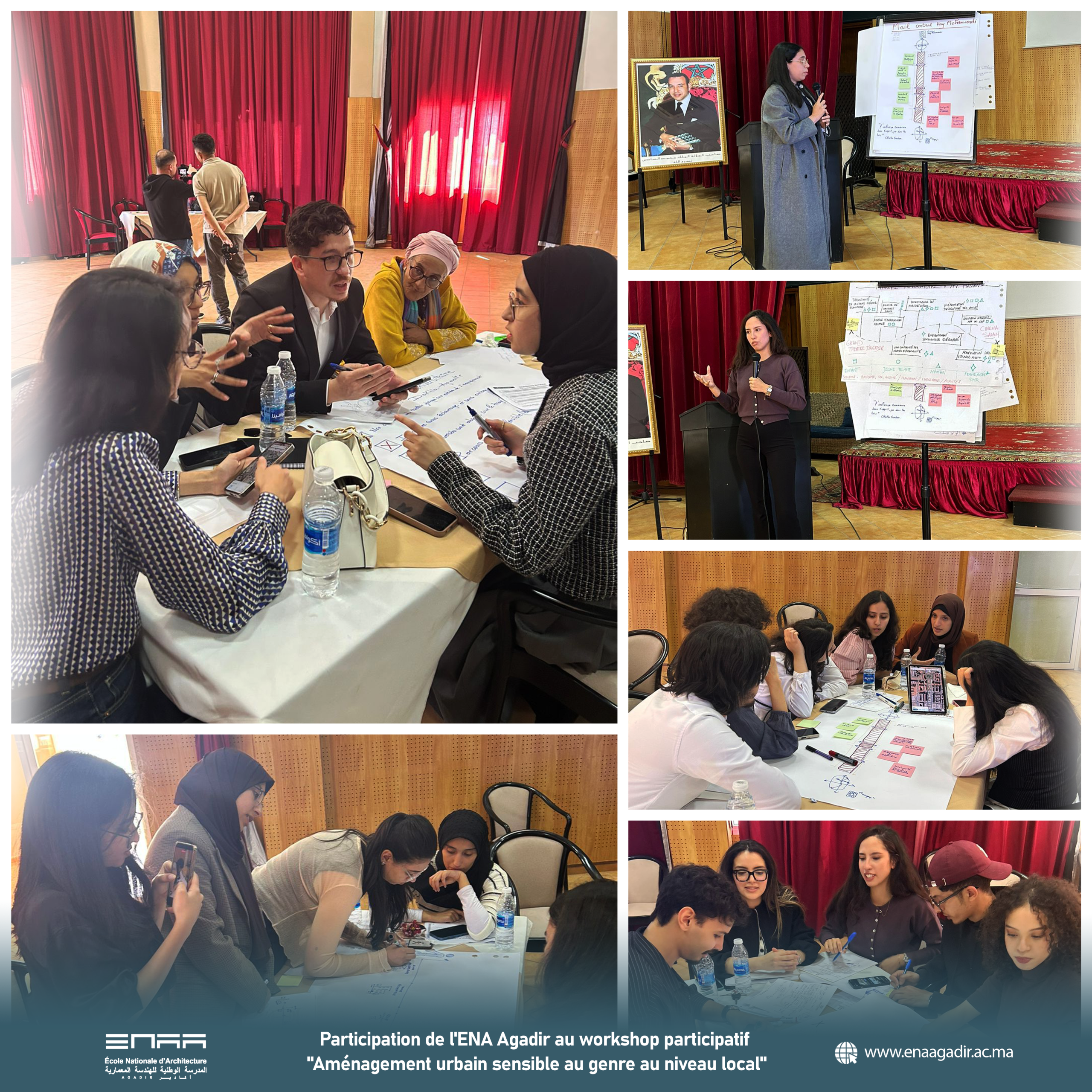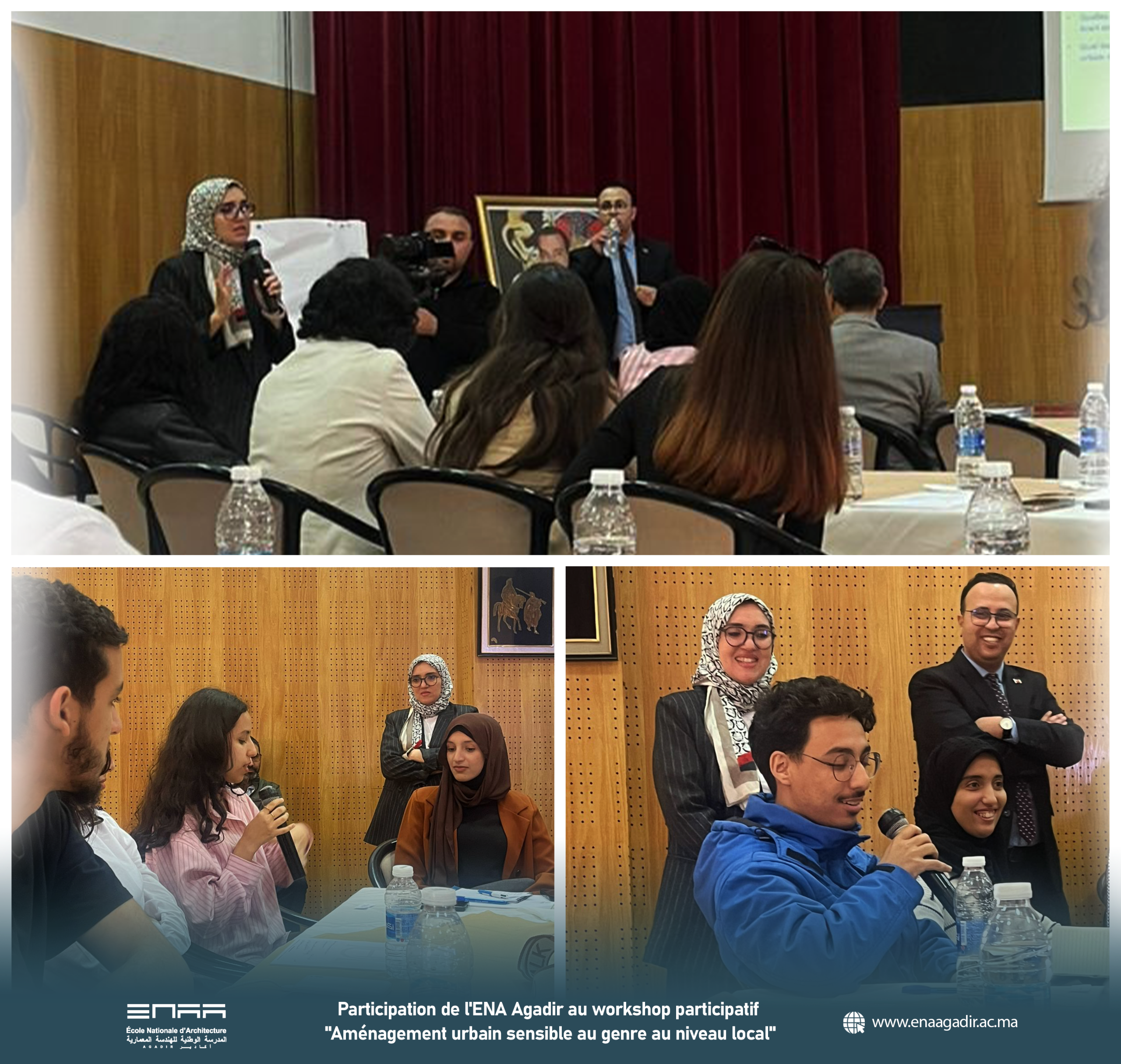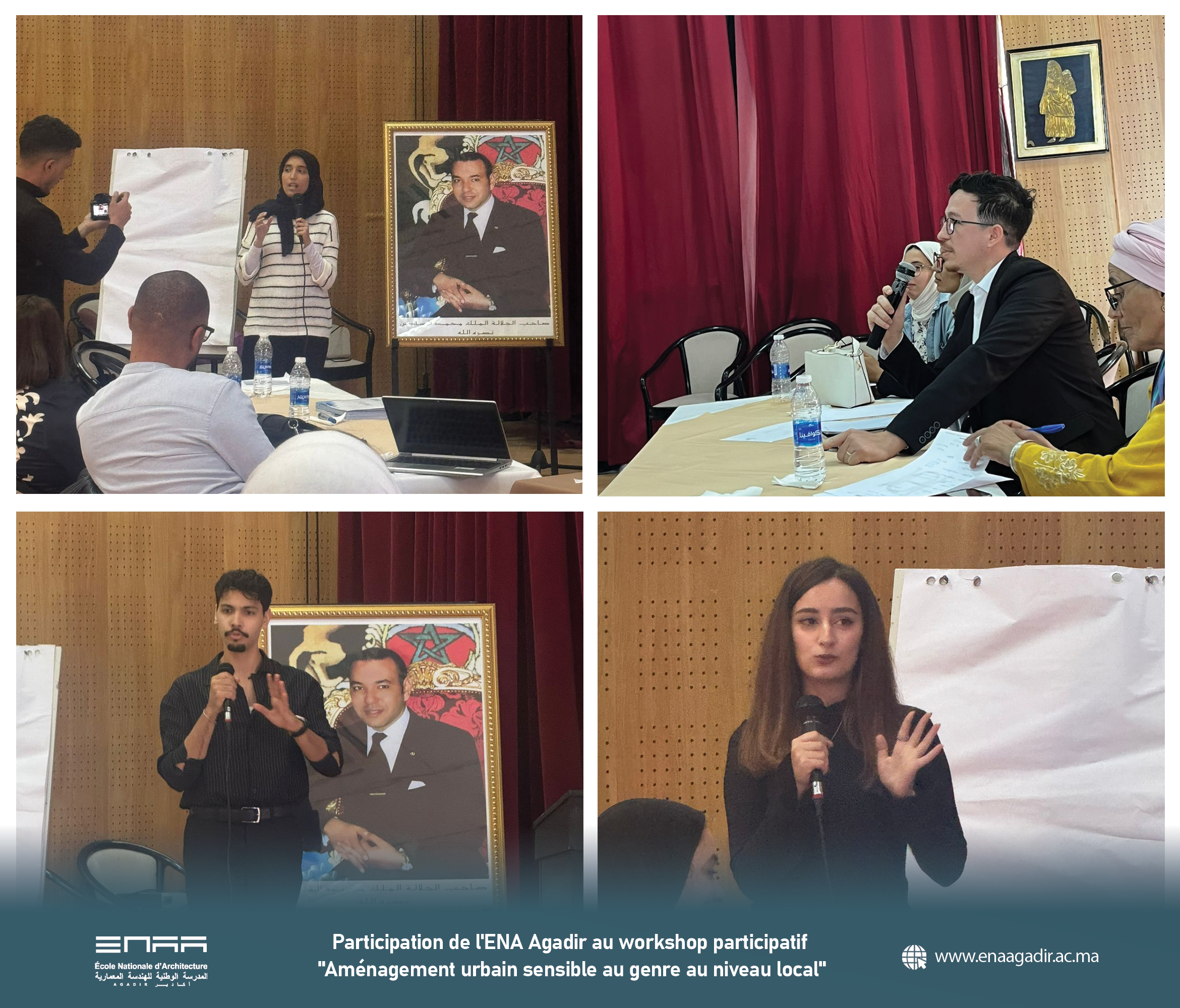 À cette occasion, les étudiants de cinquième année se sont distingués par leur participation active, accompagnés de leurs enseignants chercheurs : M.Mohamed Jadaoui, Mme Jamila Bargach et M. Oussama Sabri. Cet atelier, dédié aux aménagements urbains sensibles au genre, s’est articulé autour du thème : « Vers une commune plus inclusive, accessible et sûre pour toutes et tous ». Il a permis de nourrir la réflexion collective autour de la conception d’espaces urbains plus équitables, répondant aux besoins de l’ensemble des usagers.